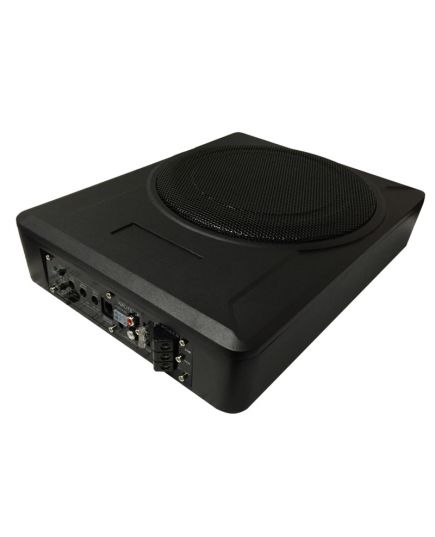 Subwoofer amplificato 250mm in metallo pressofuso ideale per installazione sotto i sedili, dotato di autoaccensione.