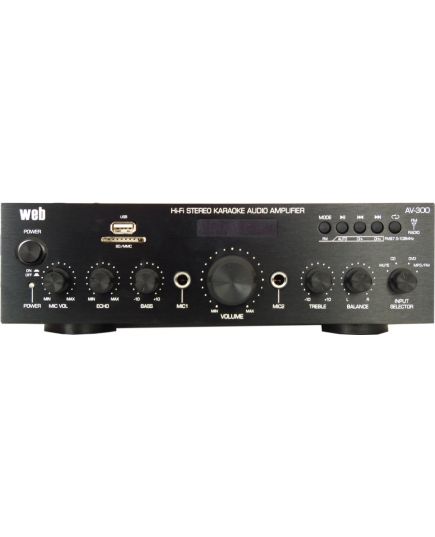 L'amplificatore stereo AV-300 è una piattaforma completa che consente l'esecuzione dei brani tramite chiavetta USB, scheda SD o Bluetooth inoltre è dotato di radio FM.
