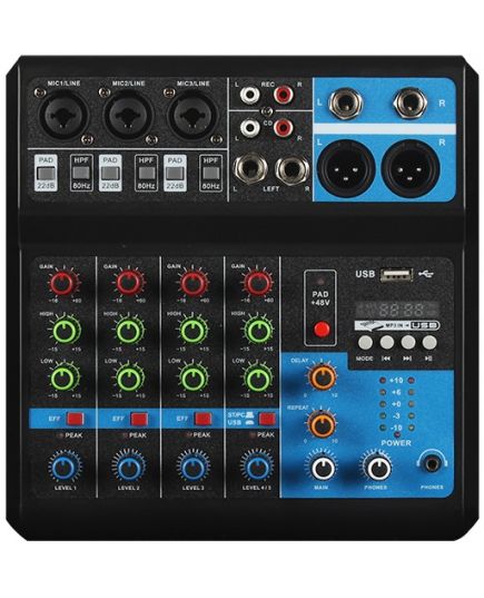 • Mixer a 5 canali con tre canali stereo e un set di canali sorgente stereo indipendenti.
