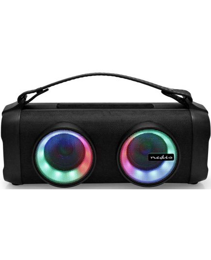 Questo stereo portatile per feste RGB Bluetooth® Nedis è composto da un altoparlante wireless da 16 W a 2.0 canali che offre un audio deciso e puro con potenti bassi. Puoi dare più vita alla tua festa con le luci LED RGB lampeggianti sulla parte anteriore. Queste luci RGB cambiano colore durante la riproduzione della musica e possono anche essere spente.