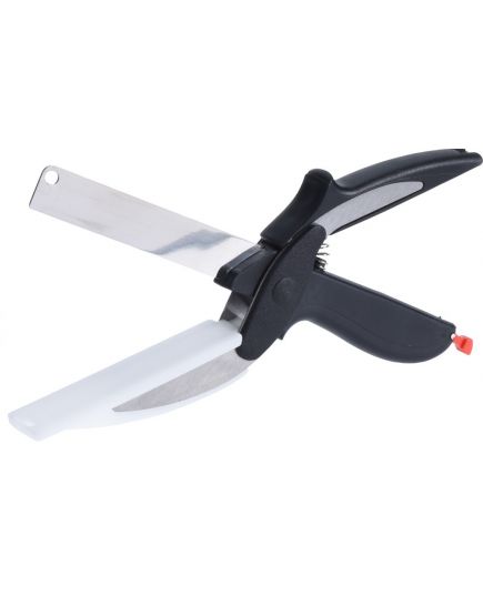 Forbici per tagliare alimenti con un comodo ripiano da taglio dove poter poggiare l'alimento da tagliare.