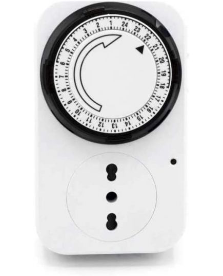 Qualsiasi elettrodomestico può essere connesso tranquillamente al TIMER. In più, grazie a delle levette che circondano l'orologio, si può fare in modo che l'accensione e lo spegnimento avvengano svariate volte in una sola giornata. Una volta impostato, l’orario resta in automatico fino ad eventuale cambiamento manuale.