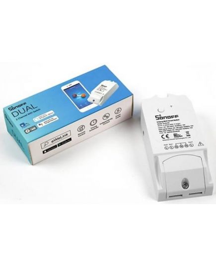 Sonoff Dual è uno smart switch WiFi universale a 2 canali, wireless per il tuo sistema di casa intelligente per accendere e spegnere da remoto elettrodomestici e dispositivi elettronici tramite l'app del telefono.