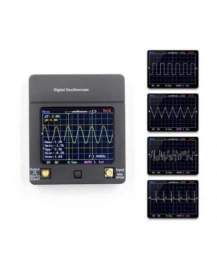 • Un oscilloscopio tascabile con display a colori e touch panel.