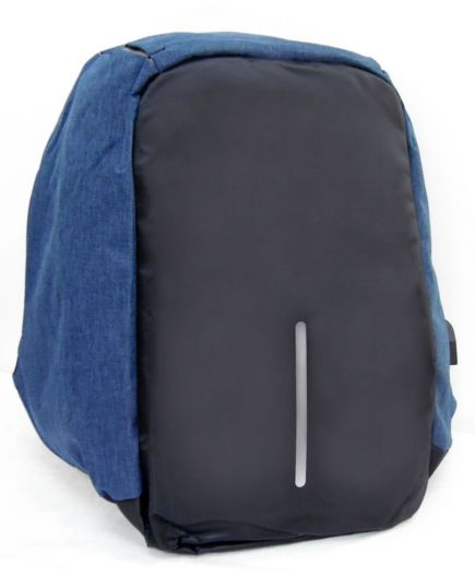 Zaino multifunzione antifurto imbottito catarifrangente USB nero-blue jeans